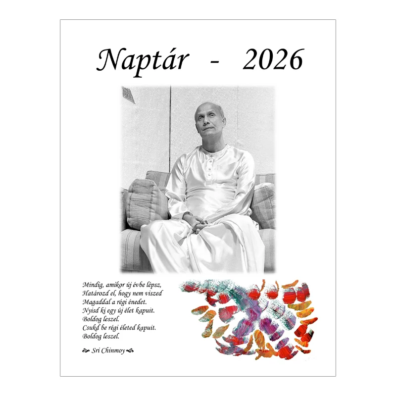 Falinaptár 2026 - Sri Chinmoy fényképekkel és idézetekkel Méret: 216×279,5mm Fényes papíron, fehér fém spirálozva és naptárakasztóval ellátva, nyomatlan karton hátlappal. |
