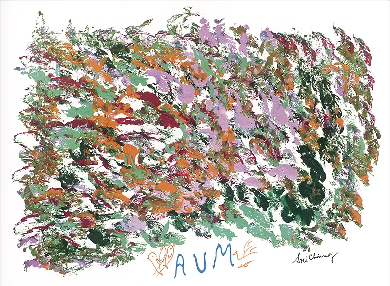 Sri Chinmoy - kasírozott Jharna Kala festmény reprodukció - AUM